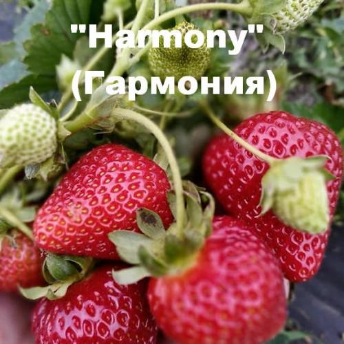 Гармонія - новий сорт полуниці, виведений голандськими селекціонерами. Це полуниця нейтрального дня, що відрізняється високою врожайністю і стійкістю до різноманітних захворювань. Полуниця Гармонія не боїться шкідників і фітофторозу, їй не страшна сіра гниль. Вабить гарними міцними кущами і великими солодкими ягодами. Плоди масою близько 50г, яскраво-червоні, блискучі, округло-конічні, ароматні, відмінного смаку з твердою м'якоттю. Це дозволяє їй непогано зберігатися і витримувати транспортування. Плодоносить довго, з літа до кінця вересня. Перша хвиля плодоношення наступає на декілька днів раніше, ніж у сорту Портола.